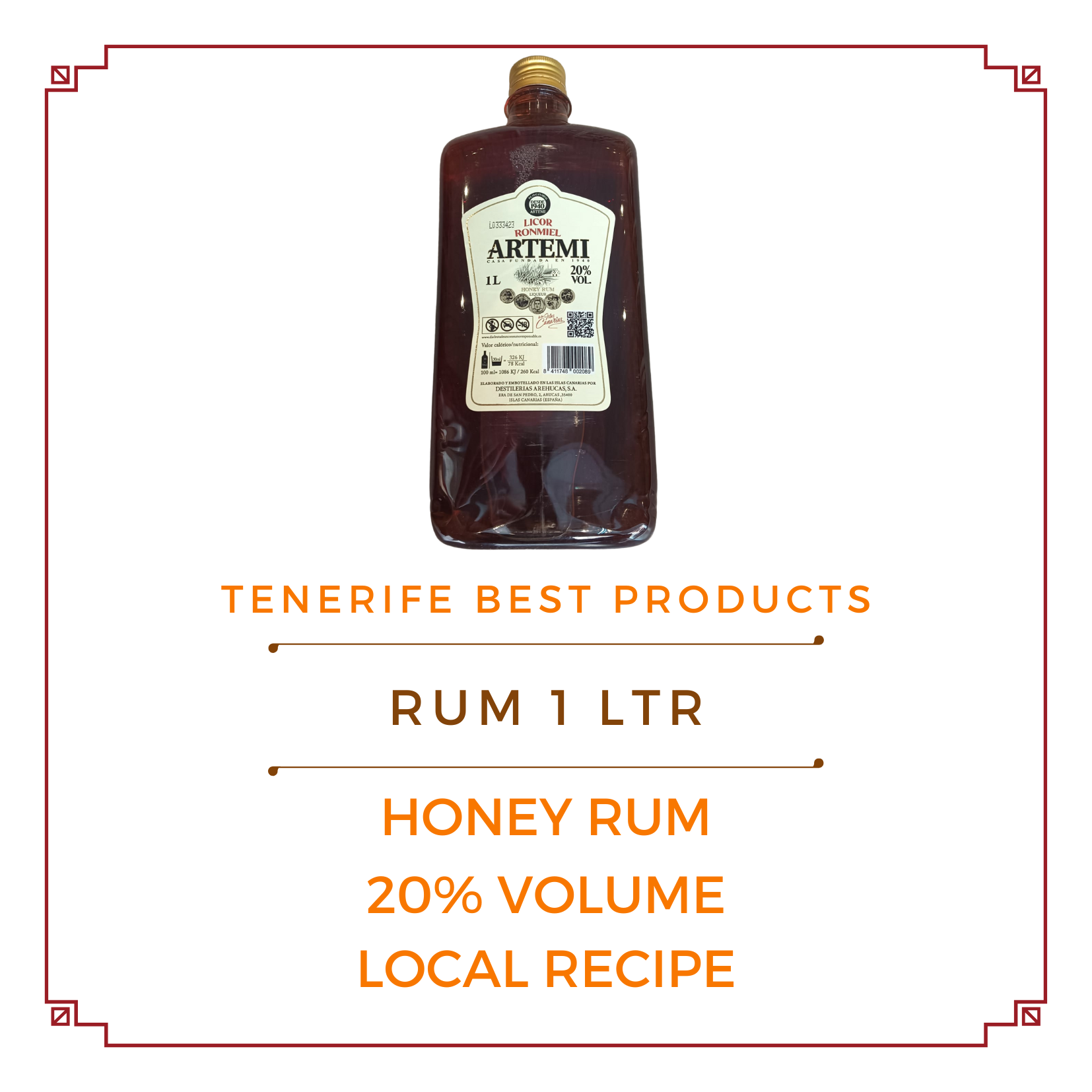 Licor típico canario, obtenido de la perfecta combinación del ron canario con la miel de abeja. El Ronmiel Artemi es un licor de color caoba intenso con un aroma muy marcado a cítricos y a miel, en boca percibimos lo que intuíamos visualmente, esa untuosidad ese dulzor, debemos saber que es un licor tradicional que lleva como mínimo un 2% de miel y un contenido en azúcar elevado, en cuanto a su sabor percibimos la miel y la naranja entre otros matices como pueden ser el azahar o incluso algo de caramelo, su paso perdurara en el tiempo.