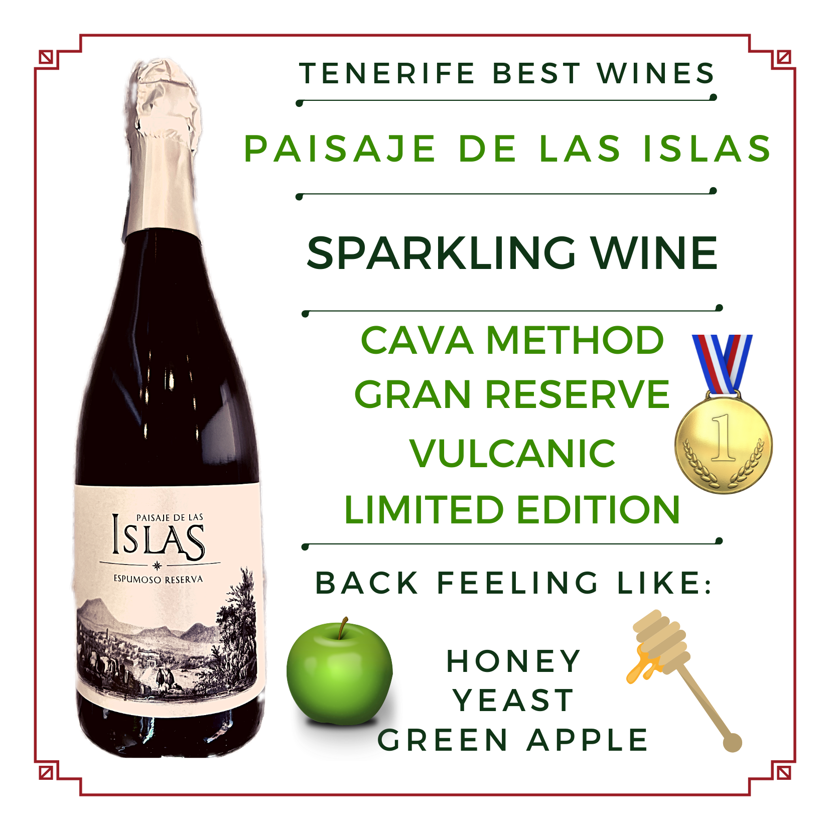 Vino Paisaje de las Islas Espumoso forma parte de la colección de vinos del proyecto Paisaje de las Islas que lleva a cabo Agustín G. Farráis en colaboración con viticultores de otras islas quienes pretenden hacernos llegar una oferta variada y significativa de los vinos canarios de las diversas zonas, así como de sus singulares variedades de uva pre filoxéricas. Elaborado con la variedad de uva Listan Negro en Blanc de Noirs es un vino espumoso de marcado carácter gastronómico. Destacan los aromas tropicales, florales así como notas dulces de fruta almibarada. Burbuja fina y larga crianza en botella hacen de este vino espumoso canario toda una apuesta por la tipicidad y singularidad de las Islas Canarias.