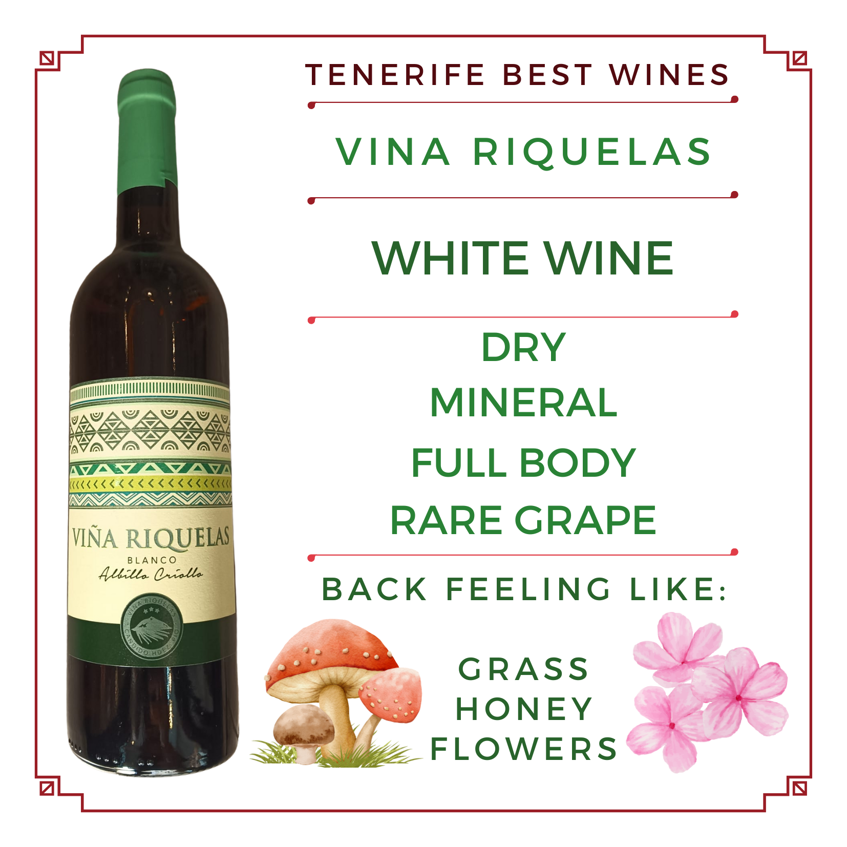 Viña Riquelas Blanco Albillo Criollo es un vino edición limitada que elabora Bodegas Cándido Hernández Pio trabajando una varietal autóctona canaria como es la Albillo Criollo. Un vino elaborado al amparo de la D.O. Tacoronte-Acentejo.