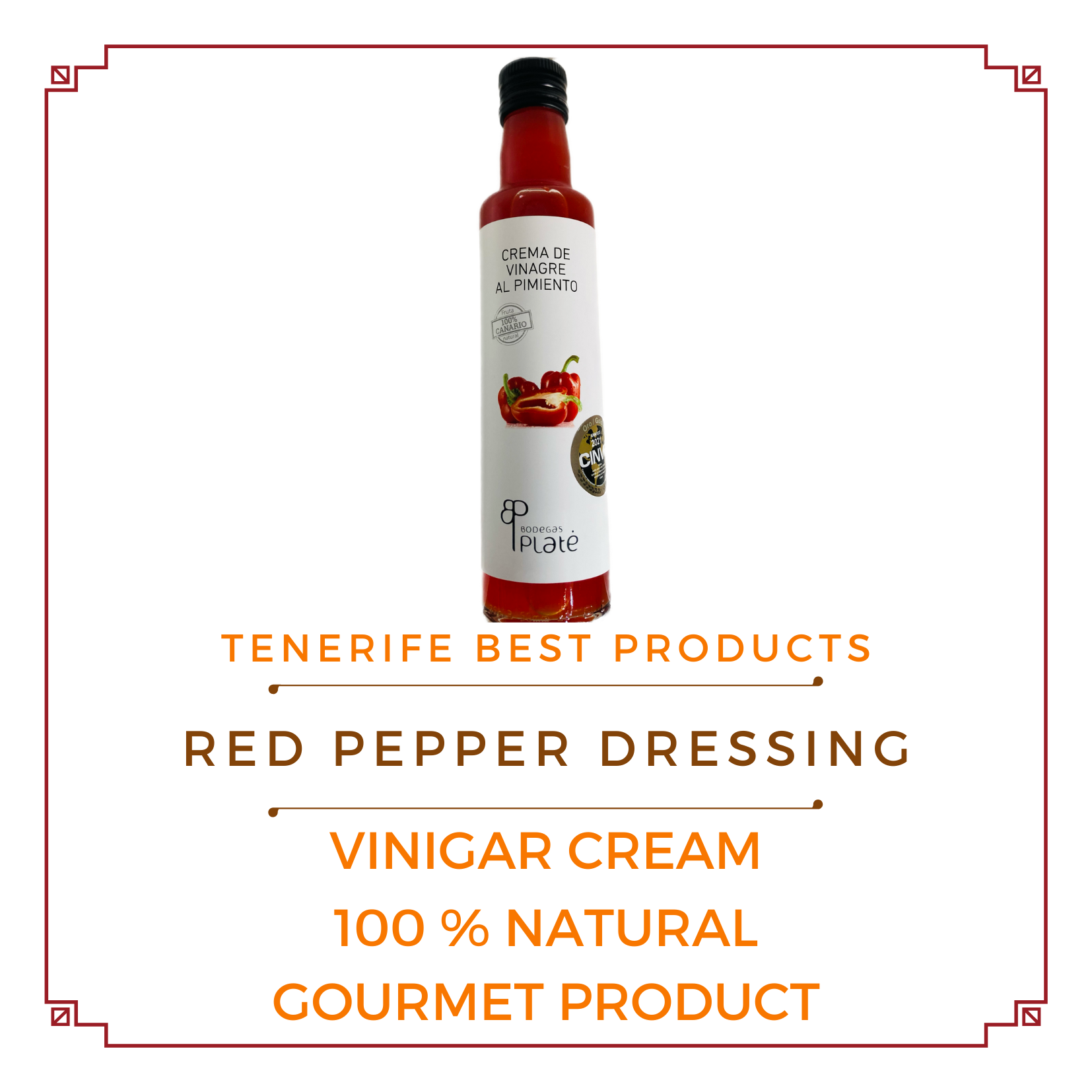 La vinagreta de pimiento Platé está hecha con pimientos rojos frescos y naturales cultivados en Tenerife, un producto canario 100%.