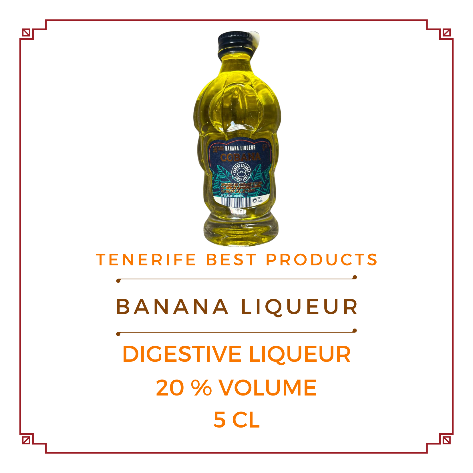 Este exquisito licor de plátanos canarios, se elabora conservando los métodos tradicionales de las antiguas generaciones de Canarias, que maceraban las frutas para obtener mistela. Su color amarillo, con fuertes notas verdes y ribetes dorados, lo hacen atractivo y apetecible a la vista. Una intensidad media alta, limpio y con aromas a plátanos maduros. De ataque dulce en boca con un recorrido corto y un postgusto agradable e intenso. Se recomienda tomarlo muy frío.