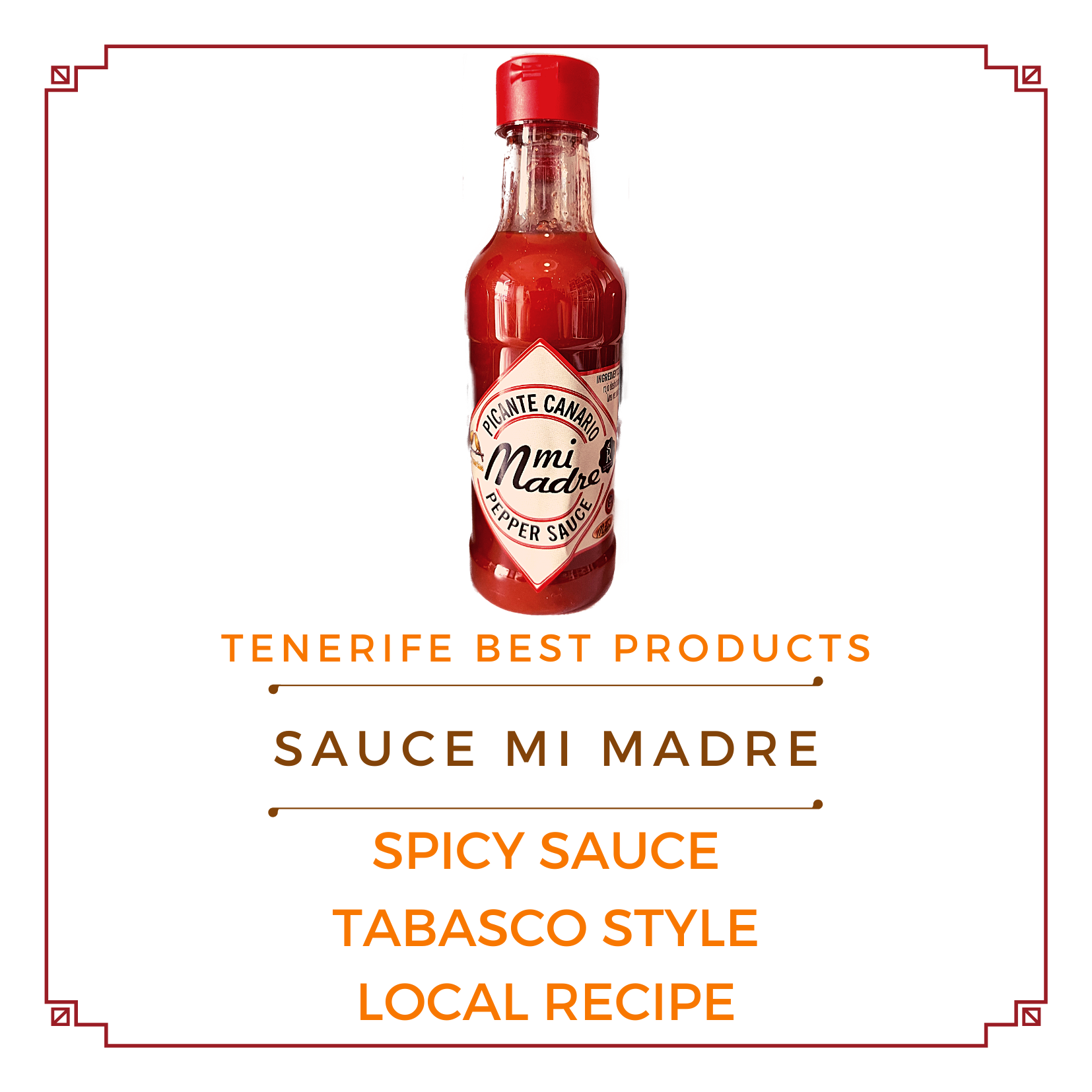 SALSA PICANTE de Canarias elaborada tradicionalmente de forma artesana con ingredientes de Canarias. Ideal para enriquecer entrantes, quesos, carnes, pescados, potajes, bocadillos, pata asada y papas arrugadas. Una vez abierto mantener en frigorífico.