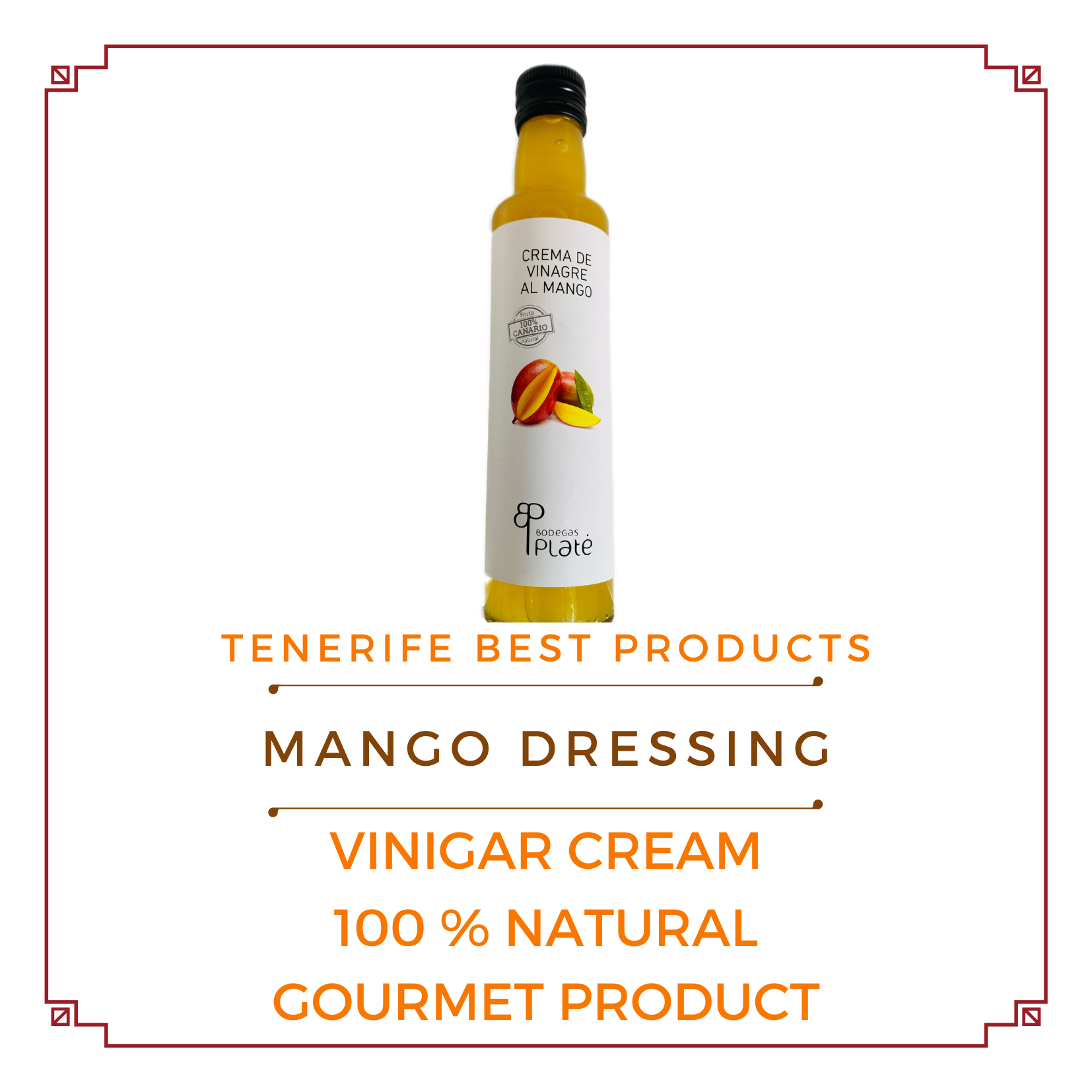 La vinagreta de mango Platé está hecha con fruta fresca natural cultivada en Tenerife, un producto canario 100%.